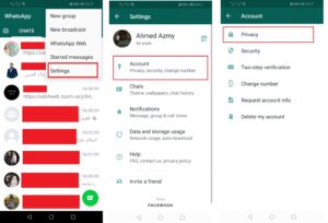 قم بفتح التطبيق، واضغط على القائمة الرئيسية للتطبيق (النقاط الثلاث الرأسية أعلى يمين شاشة التطبيق)، ثم انتقل إلى الإعدادات Settings ثم الحساب Account ثم الخصوصية Privacy.
