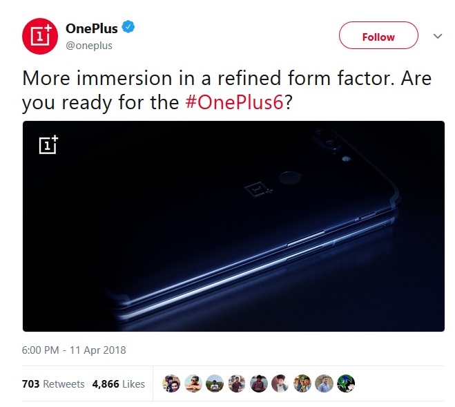 تستعد شركة OnePlus الصينية لإعلان عن هاتفها التالي OnePlus 6، وذلك عبر نشر صورة تشويقية للهاتف عبر حسابها الرسمي على منصة تويتر، مع عبارة هل أنت مستعد لـ  OnePlus 6؟