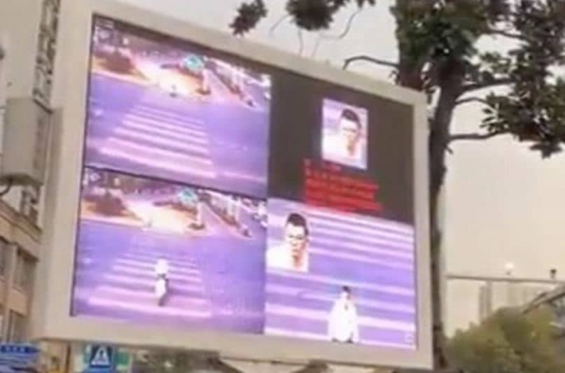 وبث أحد الصحفيين تغريدة تتضمن مقطع فيديو لشاشة عرض على الطريق العام، قامت بعرض صورة المخالفين لقواعد المرور، مع بياناتهم الشخصية، غير أنه لم يعرف على وجه الدقة موقع تصوير الفيديو، وإن كانت الصين تتبنى تقنية التعرف على الوجوه في كثير من مدنها، ومنها شنغهاي وشنجن.