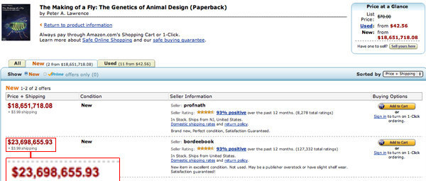 كما عرض متجر آخر لأمازون الكتاب ذاته بسعر يفوق 18 مليون دولار، ما حدث هو خلل في خوارزميات التسعير في المتجرين.