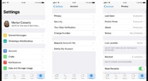 بنفس الطريقة تقريبا، يمكنك حظر أي شخص داخل تطبيق واتساب على هواتف أيفون iPhone. قم بفتح التطبيق، واختر خيار الإعدادات Settings أسفل يمين الشاشة، وادخل إلى الحساب Account ثم الخصوصية Privacy ثم الحظر Blocked، لتستعرض قائمة الاتصالات المحظورة في التطبيق، حيث يمكن الإضافة إليها أو إزالة الحظر منها.
