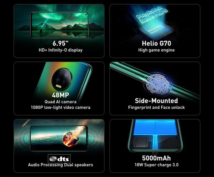 وتقدم إنفينيكس في هاتفها “إنفينيكس نوت 7” معالجا ثماني النوى من نوع ميدياتك هليو MediaTek Helio G70، مع ذاكرة وصول عشوائي (رام) بحجم 6 جيجابايت، وسعة داخلية 128 جيجابايت.