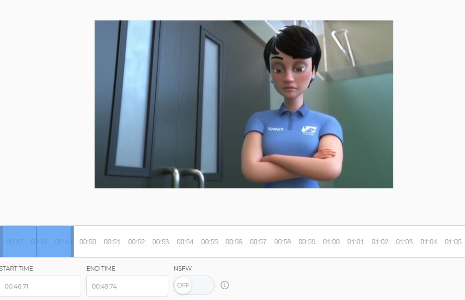 سيأخذك متصفح الإنترنت الآن إلى موقع (gifs.com)، ليقوم بعرض الفيديو، ومع أداوت حفظ الصورة المتحركة منه، ومن بين هذه الأدوات توقيت البداية والنهاية للصورة المتحركة، وكذلك عمل تغييرات على الصورة، مثل إضافة نص أو ملصق (ستيكر)، أو قص الصورة (Crop) أو تدويرها (Rotate).