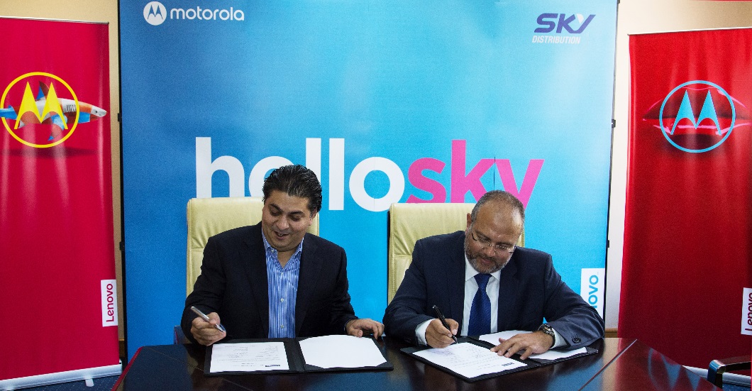 أعلنت شركة لينوفو عن إبرام شراكة استراتيجية مع شركة سكاي، لتوزيع أجهزة موتورولا في مصر من خلال شبكة التوزيع الواسعة التي تمتلكها الأخيرة في مختلف أنحاء البلاد وعبر شبكة الإنترنت. ويمكن للمستخدمين شراء الهواتف من أي من متاجر الشركة، أو حتى طلب الهاتف عبر الإنترنت، بجانب الحصول على خدمة ما بعد البيع.