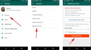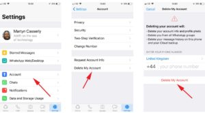 ولا تختلف خطوات حذف حسابك على تطبيق “واتساب”، سواء كنت تستخدم هواتف أندرويد أو هواتف iOS، ففي كلتا الحالتين سوف تقوم بالدخول على الإعدادات ثم الحساب ثم حذف حسابي (Settings>Account>Delete my account).