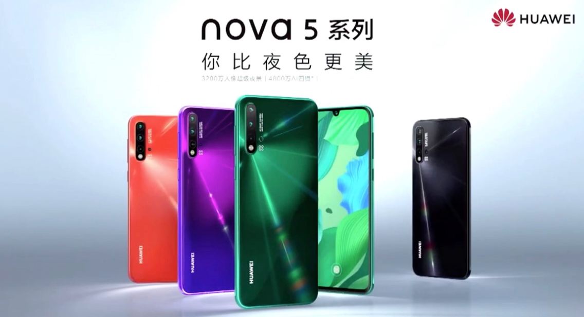 أعلنت شركة هواوي الصينية Huawei عن طرح 3 هواتف ذكية جديدة، هي “نوفا 5″ Nova 5 و”نوفا 5 برو” Nova 5 Pro و”نوفا 5 آي” Nova 5i، وذلك في البلد الأم الصين بحلول نهاية الشهر الجاري، إلى جانب مجموعة شرائح جديدة من طراز “كيرين 810” (Kirin) قياس 7 نانوميتر، الأمر الذي يعتبر تحدي للحظر الأمريكي المفروض على هواوي.