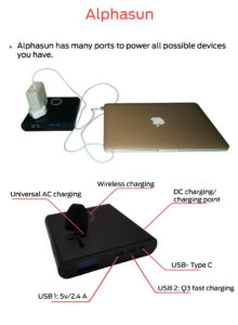 مع هذه الإمكانيات التي يقدمها باور بانك “ألفاصن”، فإنه يمكن شحن وتشغيل العديد من الأجهزة، مثل شاشات التلفزيون واللابتوب والهواتف الذكية والحواسيب اللوحية (تابلت) ولمبات الليد LED، وقد راعى مبتكرو “ألفاصن” ألا يزيد التيار الخارج منه عن 100 وات، حتى يمكن السفر به على متن الرحلات الجوية دون أن تحظره السلطات الأمنية في المطارات.